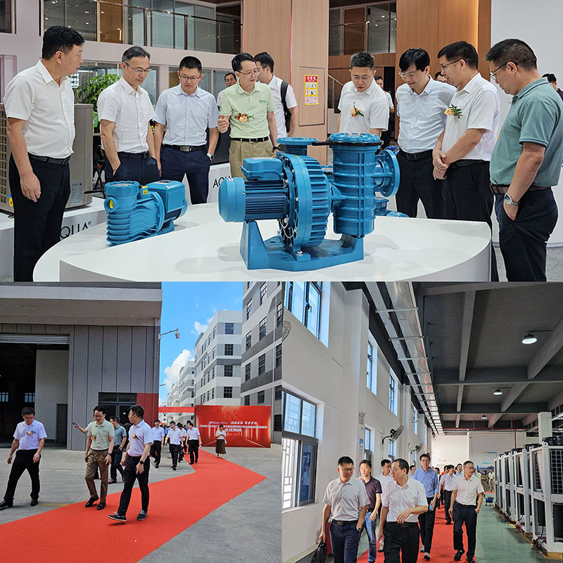 揭牌仪式之后,华南理工大学领导一行走进广东91麻豆电影在线观看节能设备有限公司园区,实地参观了AQUA91麻豆电影在线观看空气源热泵生产厂家的科研与产品中心,详细了解了企业的技术研发与岗位需求等情况,并与公司负责人进行了深入交流。