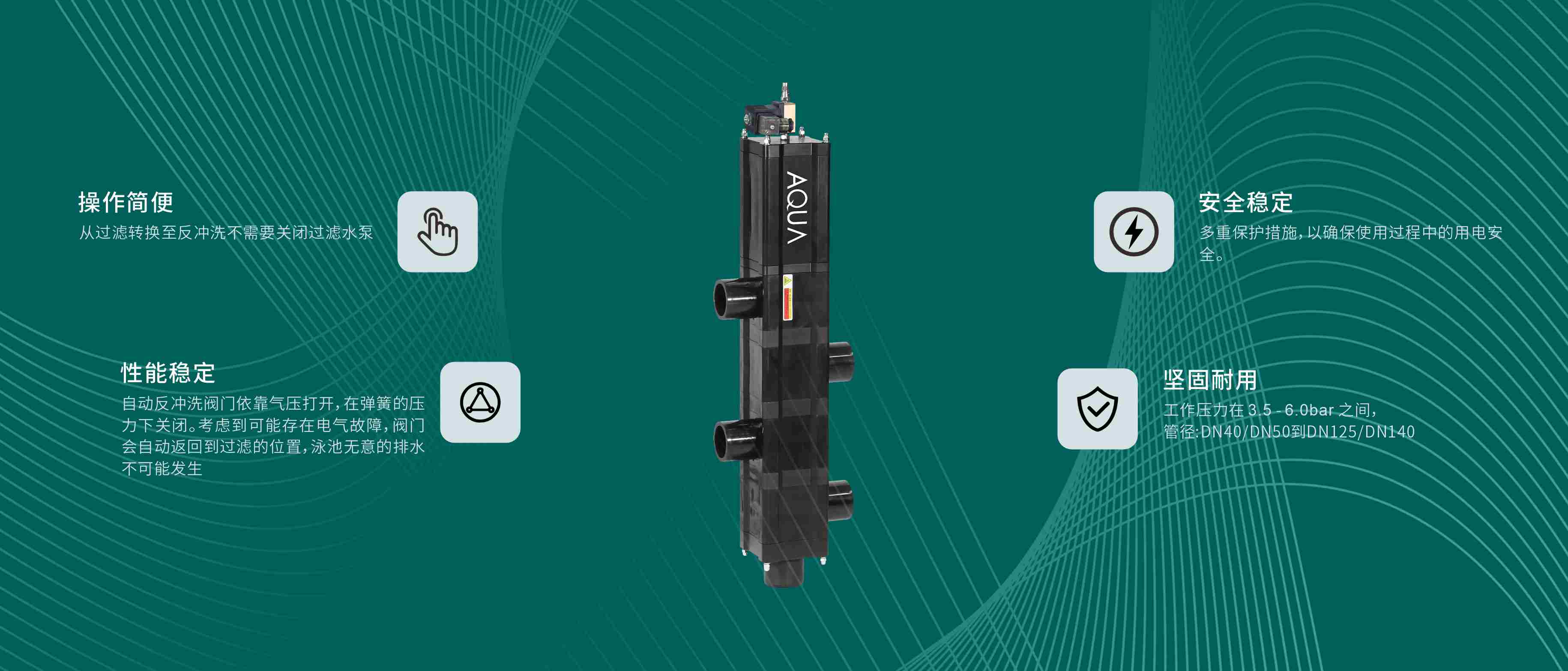 AQUA91麻豆电影在线观看过滤砂缸承受温度可达45℃;具有耐高温、耐腐蚀、抗老化,操作简单、精密过滤、坚固耐用等诸多优点,是品质十分优良的麻豆三级高潮性爱片设备。